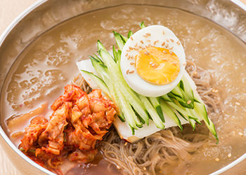 韓国の代表的な麺料理「冷麺」は締めの一品に!キレのある透明のスープが美味しさの秘密です!